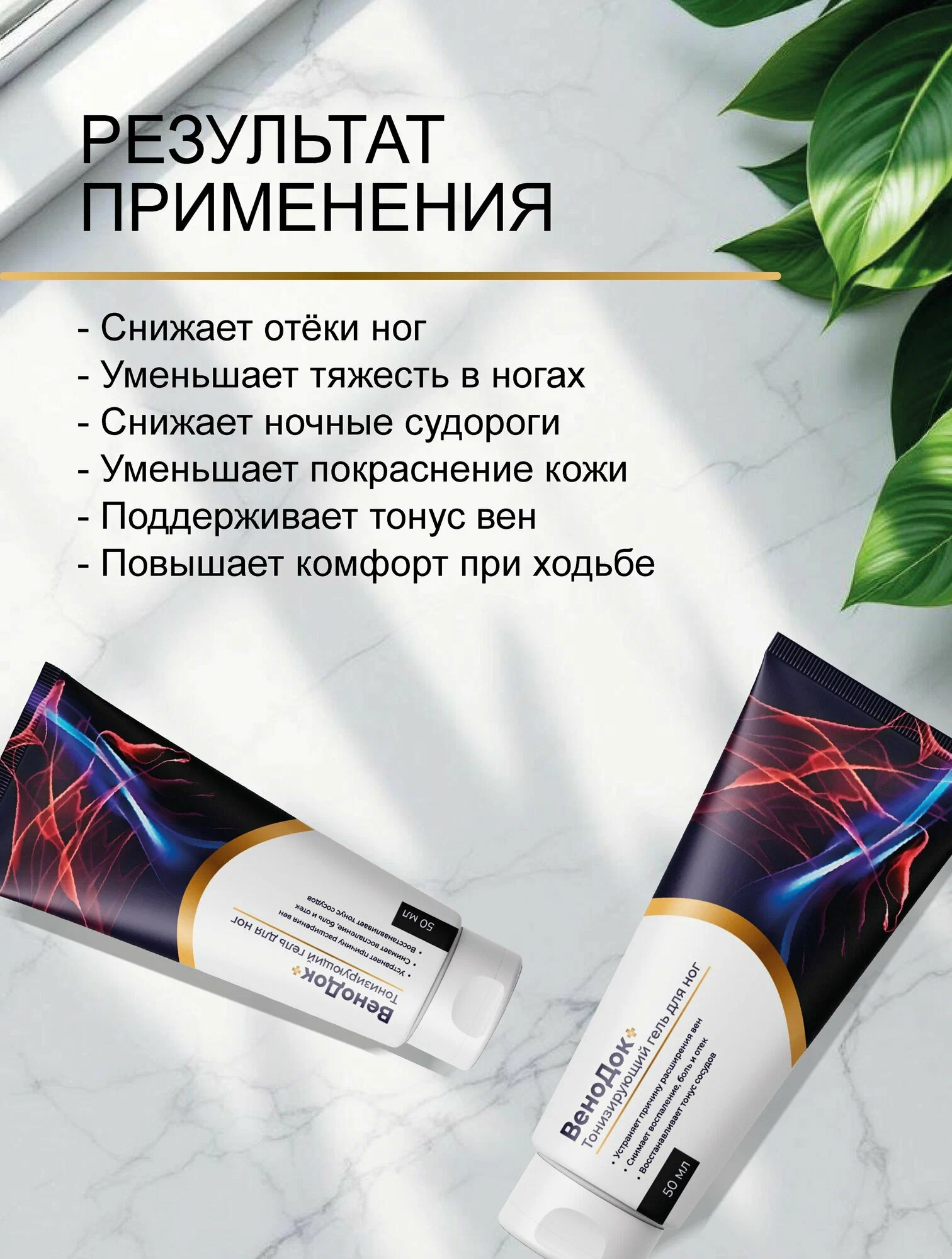 «Венодок» — эффективный натуральный гель для ног, который быстро снимает тяжесть, усталость и напряжение после долгого дня на ногах или сидячей работы. Он мягко охлаждает кожу, уменьшает отёки и припухлость вен, успокаивает раздражение, улучшает кровоток и возвращает лёгкость в ногах. Гель глубоко проникает к проблемным участкам, укрепляет стенки сосудов, снимает воспаление и дискомфорт, предотвращает появление новых сосудистых звёздочек и помогает ногам выглядеть и чувствовать себя здоровыми. Благодаря только природным компонентам «Венодок» бережно ухаживает за кожей и венами, позволяя забыть о вечной усталости, отёках, тяжести и жжении в ногах.